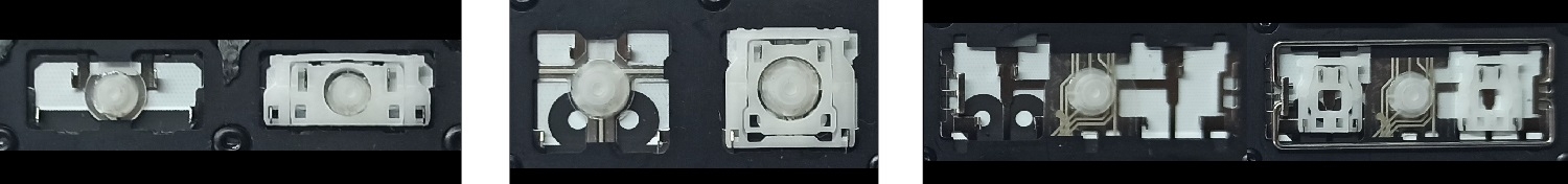 - Bij de meeste toetsenborden die er van buiten identiek uitzien, werden verschillende soorten clips onder de toetsen gebruikt.