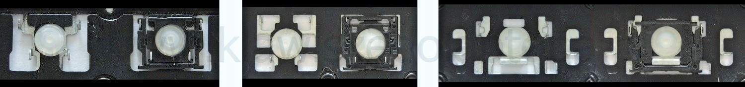 - Bij de meeste toetsenborden die er van buiten identiek uitzien, werden verschillende soorten clips onder de toetsen gebruikt.