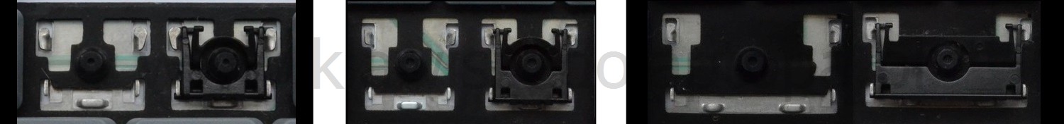 - Bij de meeste toetsenborden die er van buiten identiek uitzien, werden verschillende soorten clips onder de toetsen gebruikt.