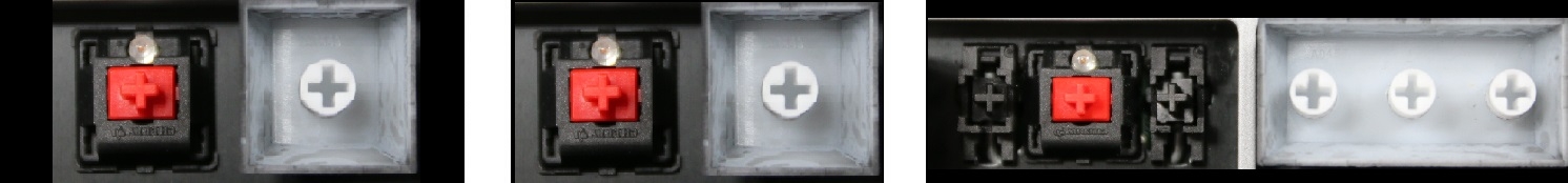 - Om het juiste model te kiezen, vergelijk de lege plek op jouw toetsenbord met de onderstaande foto’s, of verwijder de toets “A” – daaronder zit altijd een middelgrote clip.