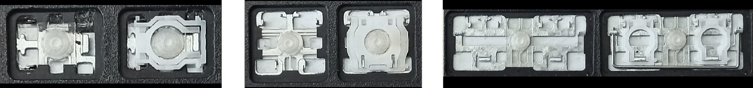 - Bij de meeste toetsenborden die er van buiten identiek uitzien, werden verschillende soorten clips onder de toetsen gebruikt.