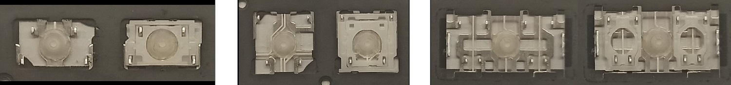 - Bij de meeste toetsenborden die er van buiten identiek uitzien, werden verschillende soorten clips onder de toetsen gebruikt.