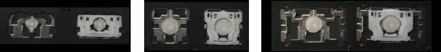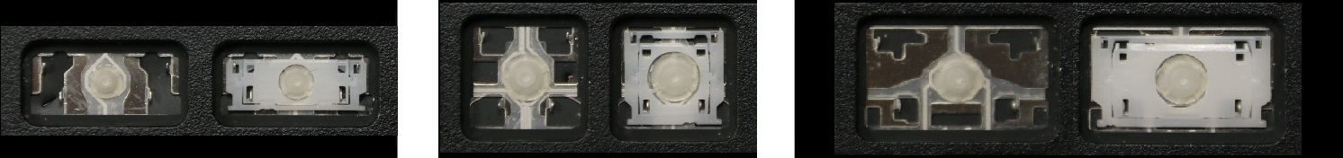 - Bij de meeste toetsenborden die er van buiten identiek uitzien, werden verschillende soorten clips onder de toetsen gebruikt.