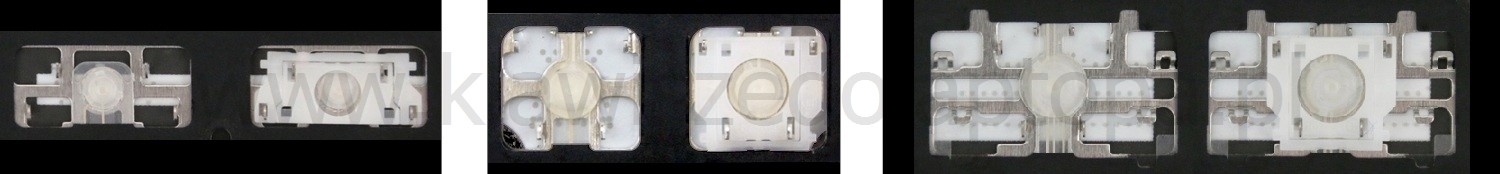 - Bij de meeste toetsenborden die er van buiten identiek uitzien, werden verschillende soorten clips onder de toetsen gebruikt.
