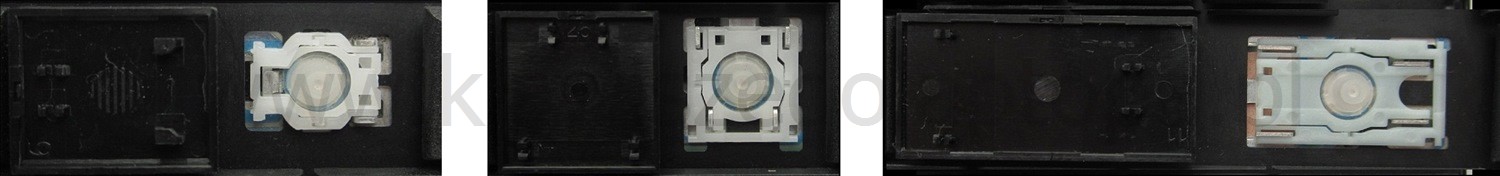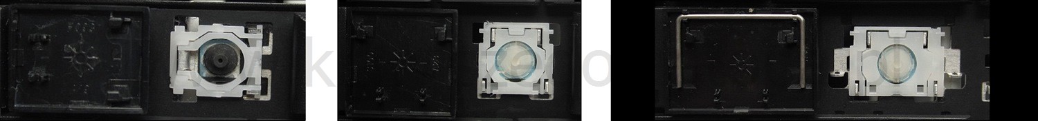 - Om het juiste model te kiezen, vergelijk de lege plek op jouw toetsenbord met de onderstaande foto’s, of verwijder de toets “A” – daaronder zit altijd een middelgrote clip.