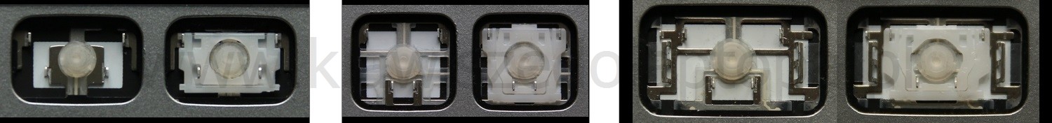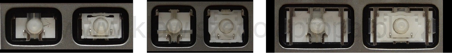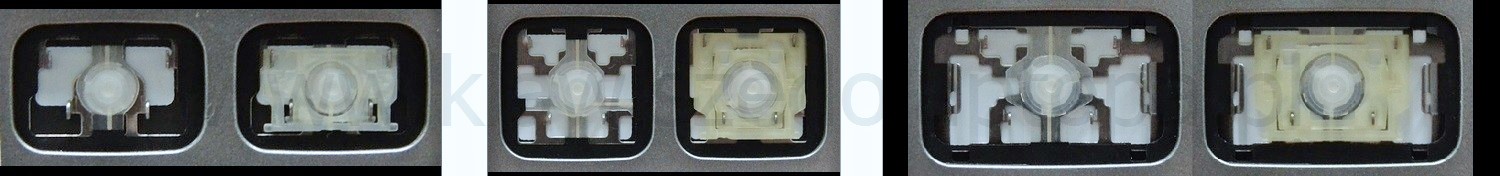 - Bij de meeste toetsenborden die er van buiten identiek uitzien, werden verschillende soorten clips onder de toetsen gebruikt.