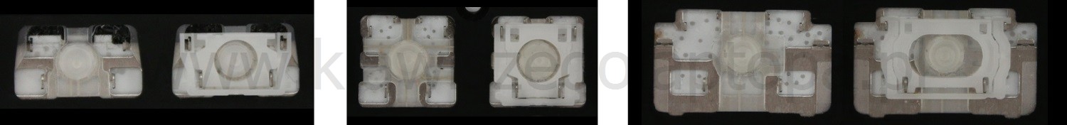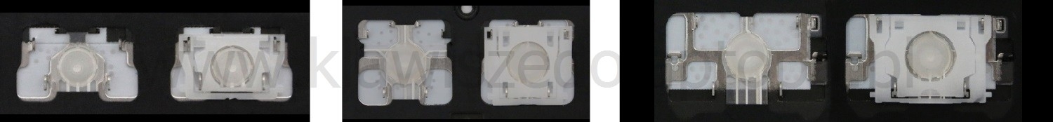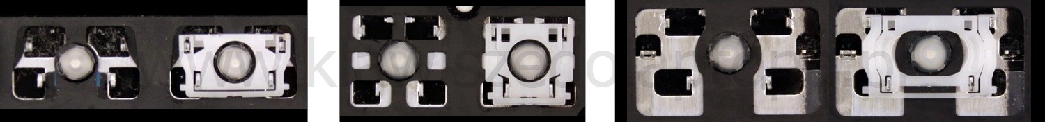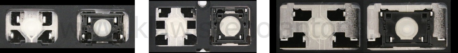 - Bij de meeste toetsenborden die er van buiten identiek uitzien, werden verschillende soorten clips onder de toetsen gebruikt.