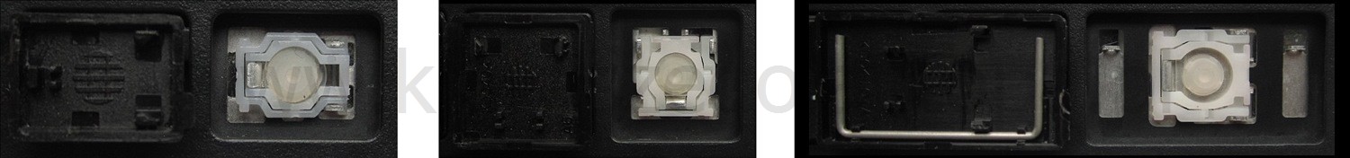 - Om het juiste model te kiezen, vergelijk de lege plek op jouw toetsenbord met de onderstaande foto’s, of verwijder de toets “A” – daaronder zit altijd een middelgrote clip.