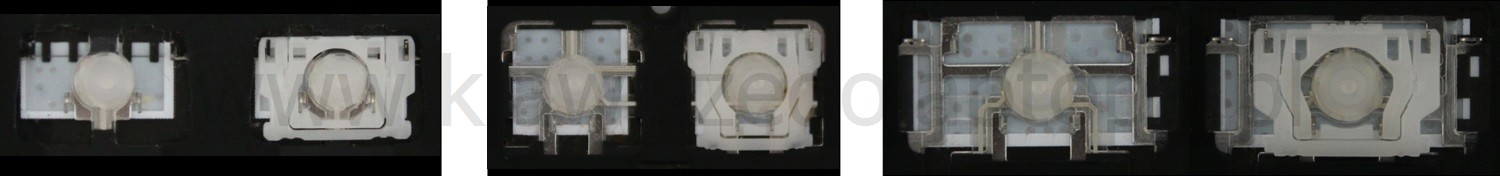 - Bij de meeste toetsenborden die er van buiten identiek uitzien, werden verschillende soorten clips onder de toetsen gebruikt.