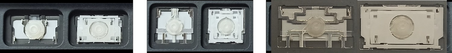 - Bij de meeste toetsenborden die er van buiten identiek uitzien, werden verschillende soorten clips onder de toetsen gebruikt.