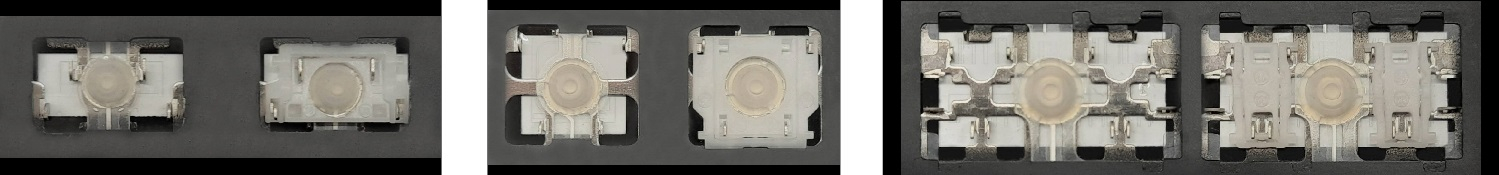 - Bij de meeste toetsenborden die er van buiten identiek uitzien, werden verschillende soorten clips onder de toetsen gebruikt.