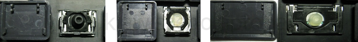 - Om het juiste model te kiezen, vergelijk de lege plek op jouw toetsenbord met de onderstaande foto’s, of verwijder de toets “A” – daaronder zit altijd een middelgrote clip.