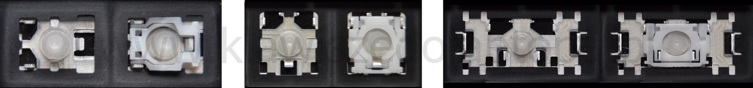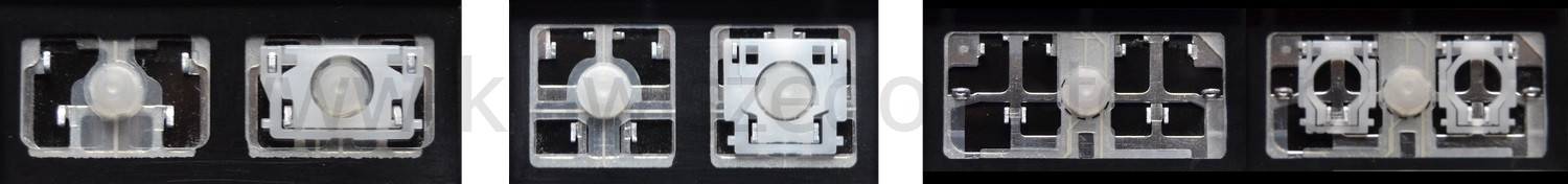 - Bij de meeste toetsenborden die er van buiten identiek uitzien, werden verschillende soorten clips onder de toetsen gebruikt.