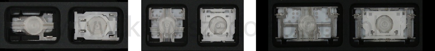 - Bij de meeste toetsenborden die er van buiten identiek uitzien, werden verschillende soorten clips onder de toetsen gebruikt.