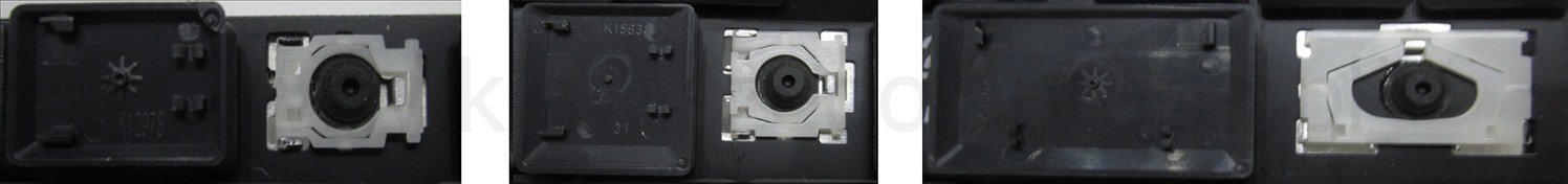 - Om het juiste model te kiezen, vergelijk de lege plek op jouw toetsenbord met de onderstaande foto’s, of verwijder de toets “A” – daaronder zit altijd een middelgrote clip.