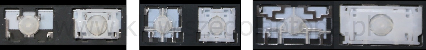 - Om het juiste model te kiezen, vergelijk de lege plek op jouw toetsenbord met de onderstaande foto’s, of verwijder de toets “A” – daaronder zit altijd een middelgrote clip.