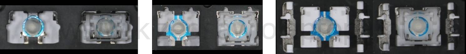 - Bij de meeste toetsenborden die er van buiten identiek uitzien, werden verschillende soorten clips onder de toetsen gebruikt.