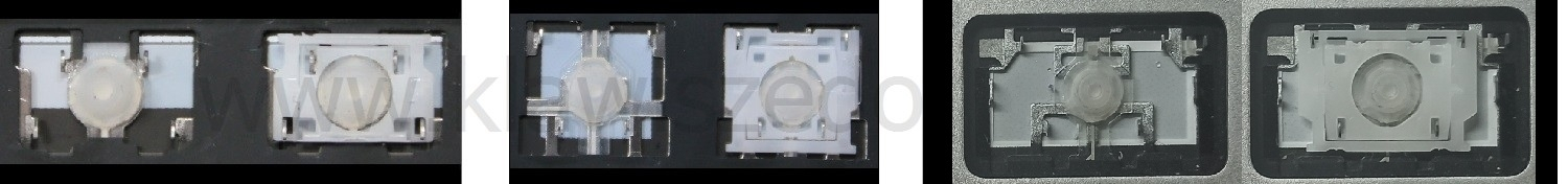 - Om het juiste model te kiezen, vergelijk de lege plek op jouw toetsenbord met de onderstaande foto’s, of verwijder de toets “A” – daaronder zit altijd een middelgrote clip.