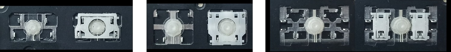 - Bij de meeste toetsenborden die er van buiten identiek uitzien, werden verschillende soorten clips onder de toetsen gebruikt.
