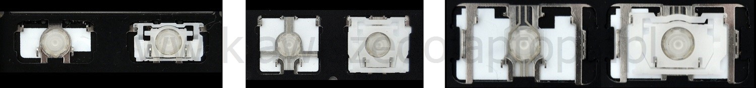 - Om het juiste model te kiezen, vergelijk de lege plek op jouw toetsenbord met de onderstaande foto’s, of verwijder de toets “A” – daaronder zit altijd een middelgrote clip.