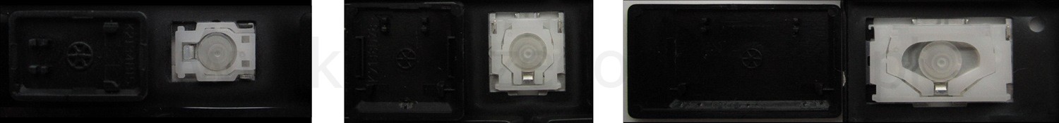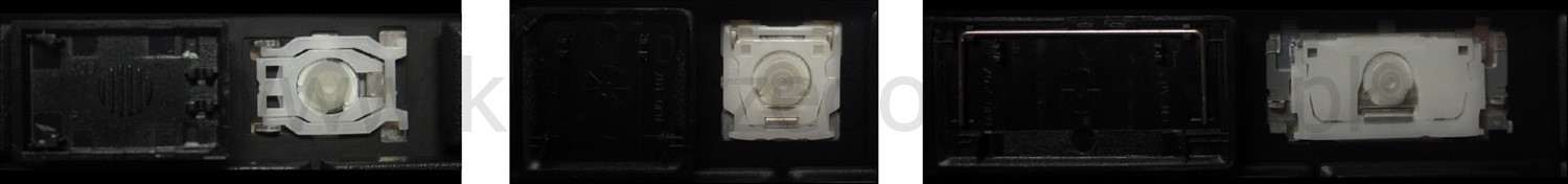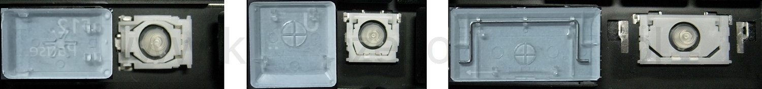 - Om het juiste model te kiezen, vergelijk de lege plek op jouw toetsenbord met de onderstaande foto’s, of verwijder de toets “A” – daaronder zit altijd een middelgrote clip.