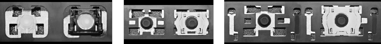 - Bij de meeste toetsenborden die er van buiten identiek uitzien, werden verschillende soorten clips onder de toetsen gebruikt.