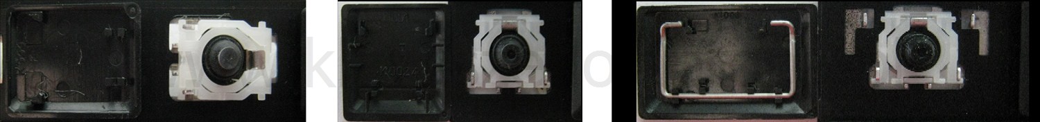 - Bij de meeste toetsenborden die er van buiten identiek uitzien, werden verschillende soorten clips onder de toetsen gebruikt.