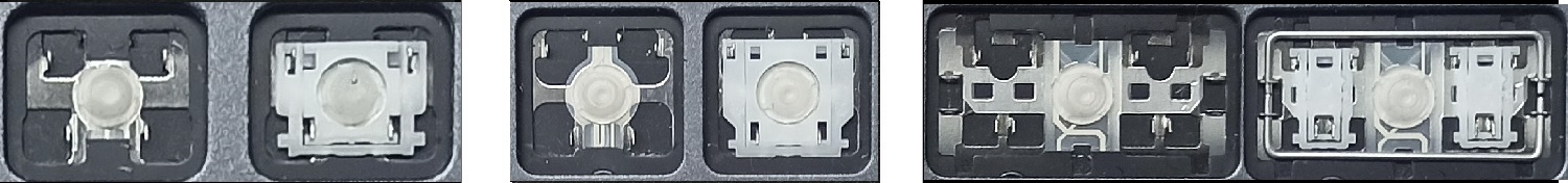 - Bij de meeste toetsenborden die er van buiten identiek uitzien, werden verschillende soorten clips onder de toetsen gebruikt.