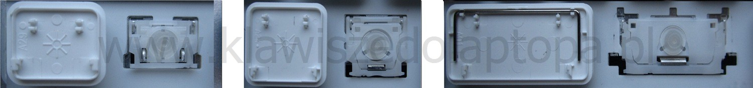 - Om het juiste model te kiezen, vergelijk de lege plek op jouw toetsenbord met de onderstaande foto’s, of verwijder de toets “A” – daaronder zit altijd een middelgrote clip.