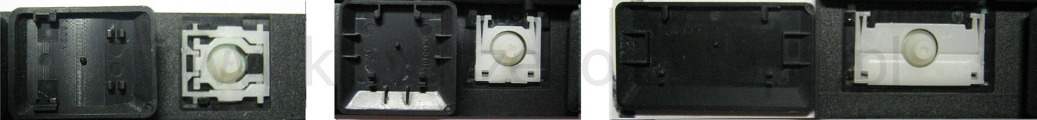 - Om het juiste model te kiezen, vergelijk de lege plek op jouw toetsenbord met de onderstaande foto’s, of verwijder de toets “A” – daaronder zit altijd een middelgrote clip.