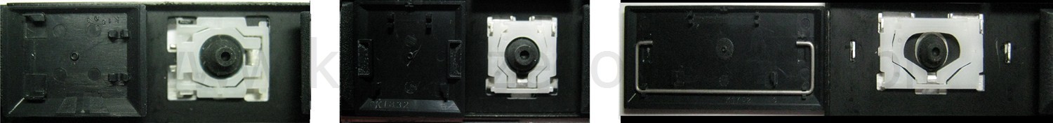 - Bij de meeste toetsenborden die er van buiten identiek uitzien, werden verschillende soorten clips onder de toetsen gebruikt.