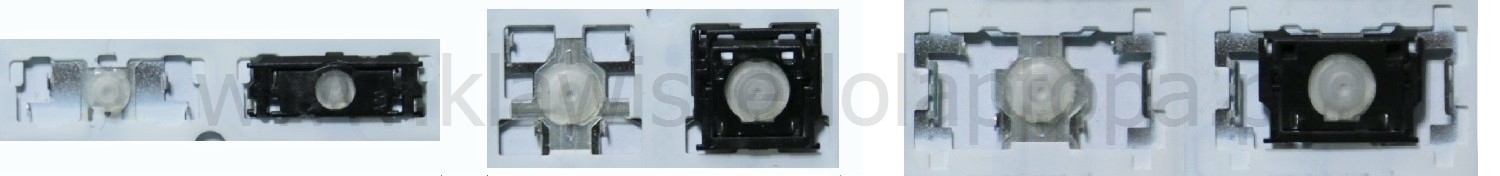 - Om het juiste model te kiezen, vergelijk de lege plek op jouw toetsenbord met de onderstaande foto’s, of verwijder de toets “A” – daaronder zit altijd een middelgrote clip.