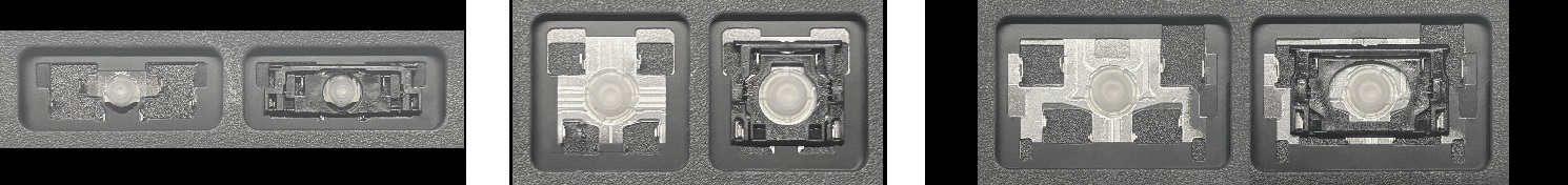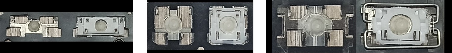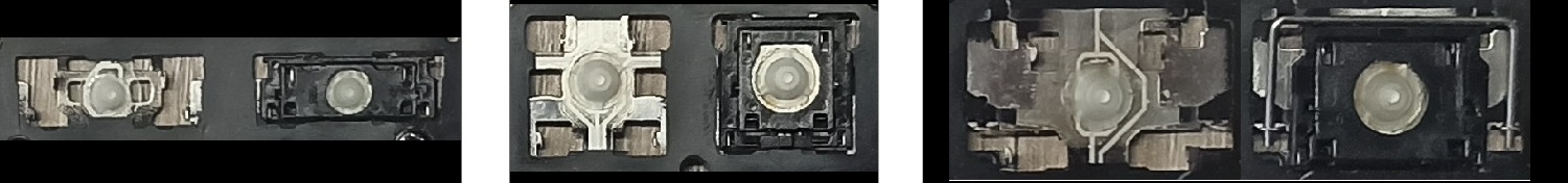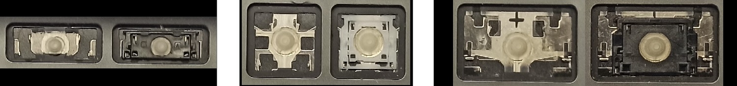 - Bij de meeste toetsenborden die er van buiten identiek uitzien, werden verschillende soorten clips onder de toetsen gebruikt.