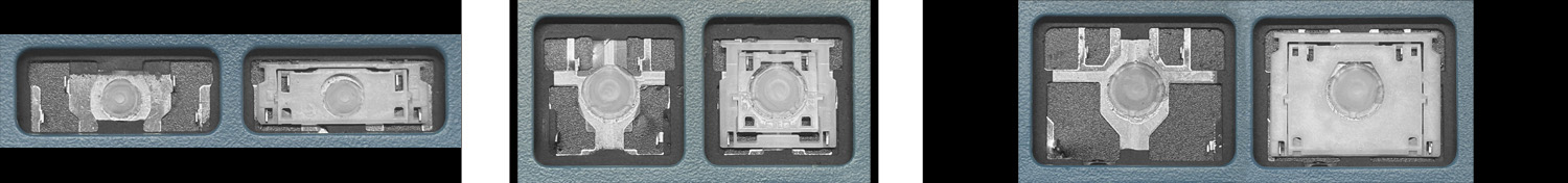 - Bij de meeste toetsenborden die er van buiten identiek uitzien, werden verschillende soorten clips onder de toetsen gebruikt.