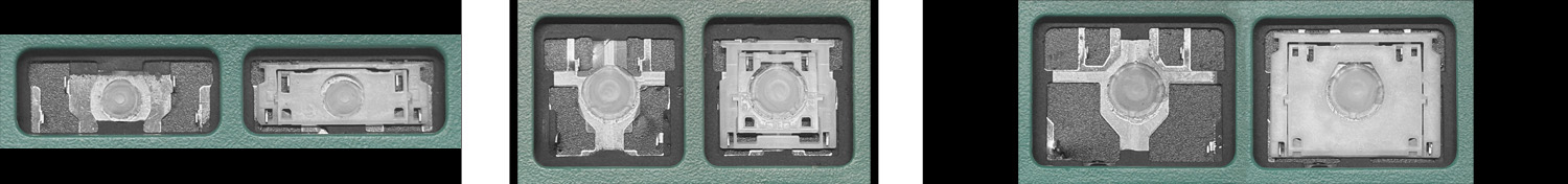 - Om het juiste model te kiezen, vergelijk de lege plek op jouw toetsenbord met de onderstaande foto’s, of verwijder de toets “A” – daaronder zit altijd een middelgrote clip.