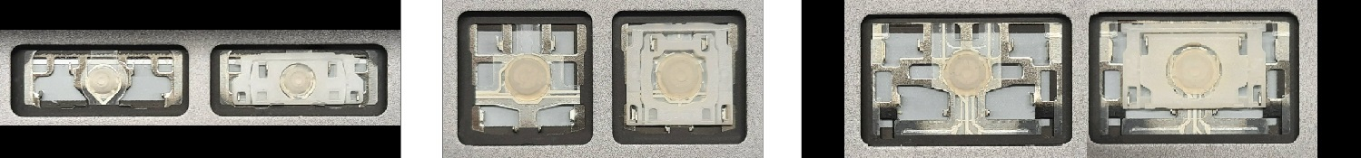- Bij de meeste toetsenborden die er van buiten identiek uitzien, werden verschillende soorten clips onder de toetsen gebruikt.