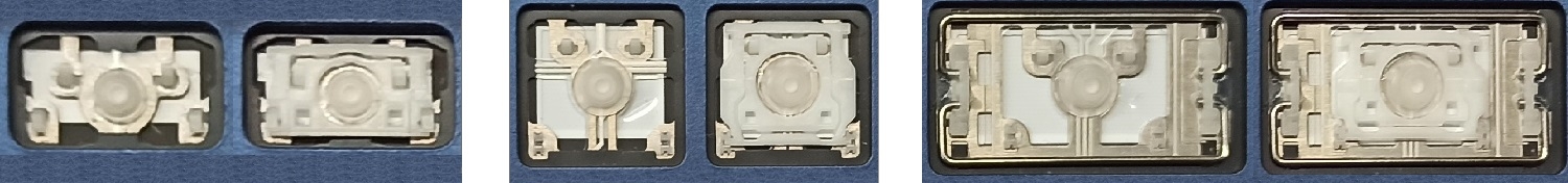 - Bij de meeste toetsenborden die er van buiten identiek uitzien, werden verschillende soorten clips onder de toetsen gebruikt.