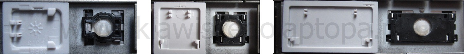 - Om het juiste model te kiezen, vergelijk de lege plek op jouw toetsenbord met de onderstaande foto’s, of verwijder de toets “A” – daaronder zit altijd een middelgrote clip.