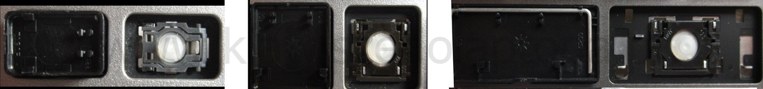 - Om het juiste model te kiezen, vergelijk de lege plek op jouw toetsenbord met de onderstaande foto’s, of verwijder de toets “A” – daaronder zit altijd een middelgrote clip.