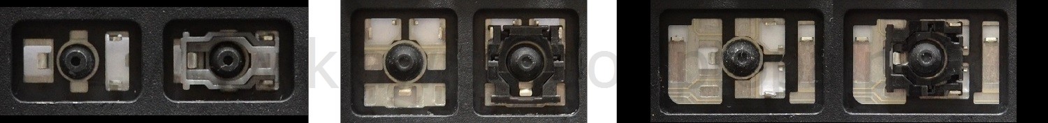 - Bij de meeste toetsenborden die er van buiten identiek uitzien, werden verschillende soorten clips onder de toetsen gebruikt.