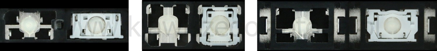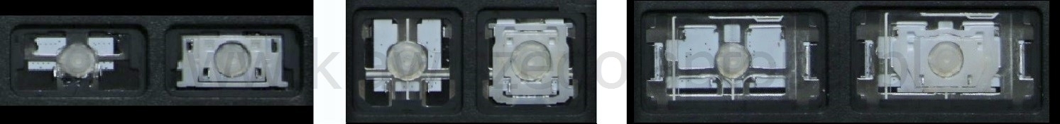 - Om het juiste model te kiezen, vergelijk de lege plek op jouw toetsenbord met de onderstaande foto’s, of verwijder de toets “A” – daaronder zit altijd een middelgrote clip.