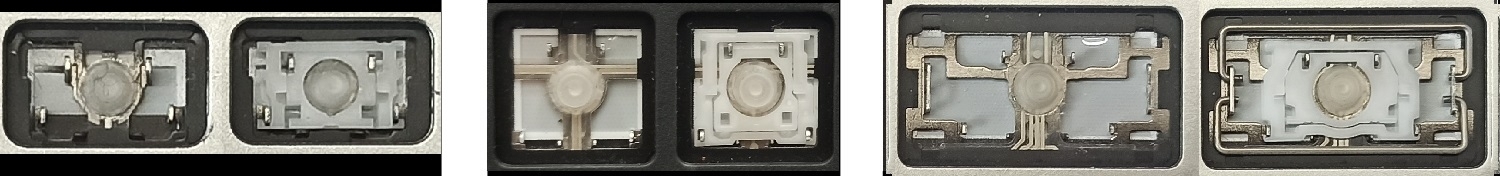 - Bij de meeste toetsenborden die er van buiten identiek uitzien, werden verschillende soorten clips onder de toetsen gebruikt.