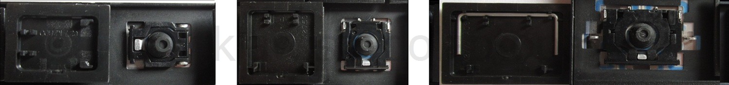 - Om het juiste model te kiezen, vergelijk de lege plek op jouw toetsenbord met de onderstaande foto’s, of verwijder de toets “A” – daaronder zit altijd een middelgrote clip.