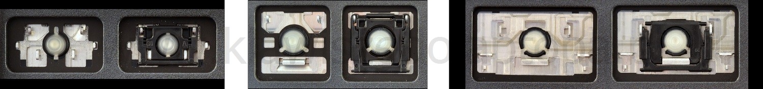 - Bij de meeste toetsenborden die er van buiten identiek uitzien, werden verschillende soorten clips onder de toetsen gebruikt.