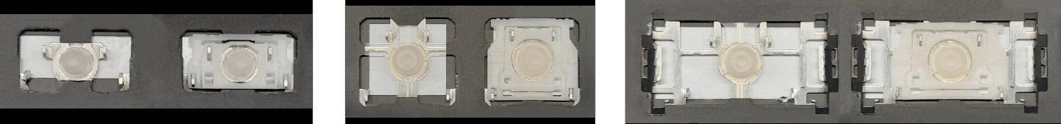 - Om het juiste model te kiezen, vergelijk de lege plek op jouw toetsenbord met de onderstaande foto’s, of verwijder de toets “A” – daaronder zit altijd een middelgrote clip.