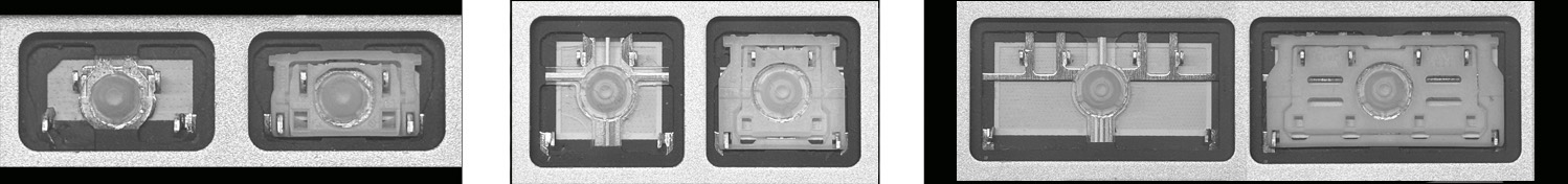 - Bij de meeste toetsenborden die er van buiten identiek uitzien, werden verschillende soorten clips onder de toetsen gebruikt.