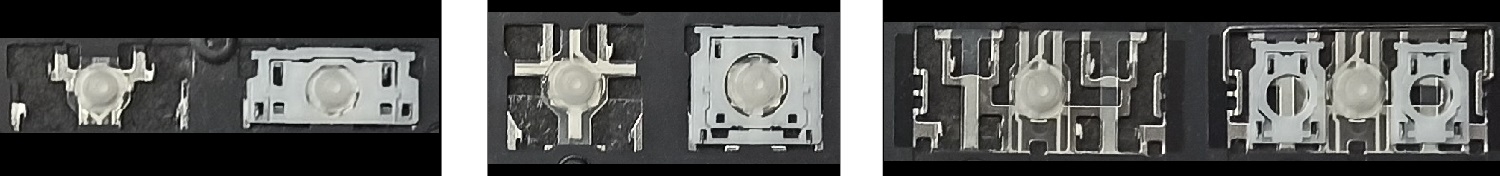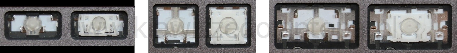 - Bij de meeste toetsenborden die er van buiten identiek uitzien, werden verschillende soorten clips onder de toetsen gebruikt.