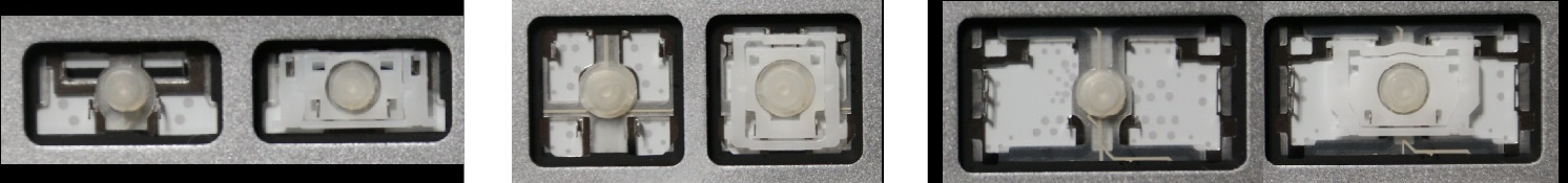 - Bij de meeste toetsenborden die er van buiten identiek uitzien, werden verschillende soorten clips onder de toetsen gebruikt.