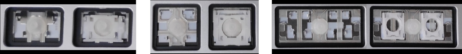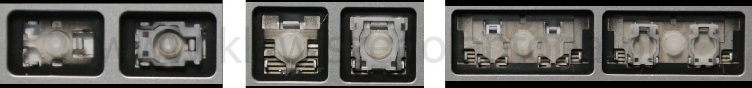 - Bij de meeste toetsenborden die er van buiten identiek uitzien, werden verschillende soorten clips onder de toetsen gebruikt.