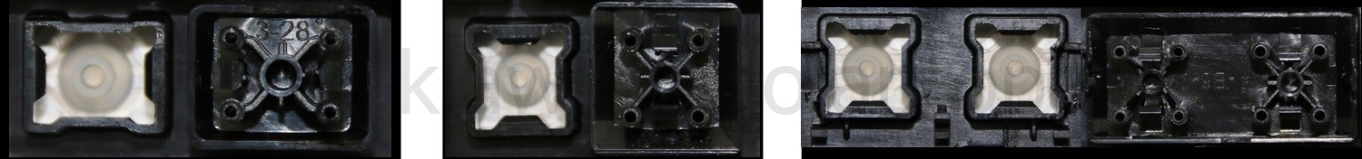 - Bij de meeste toetsenborden die er van buiten identiek uitzien, werden verschillende soorten clips onder de toetsen gebruikt.